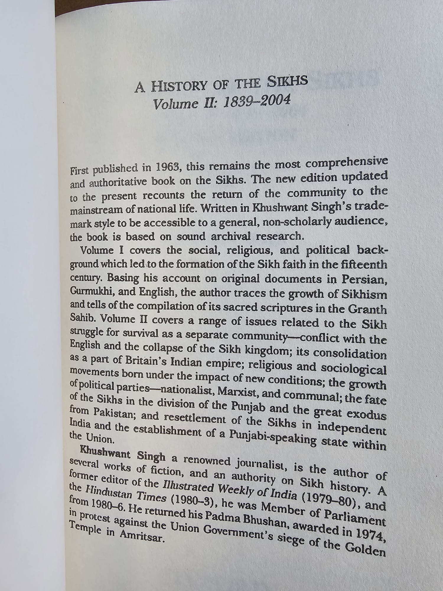 A history of the sikhs second edition volume 2 1839-2004 book khushwant singh cc www.OnlineSikhStore.com