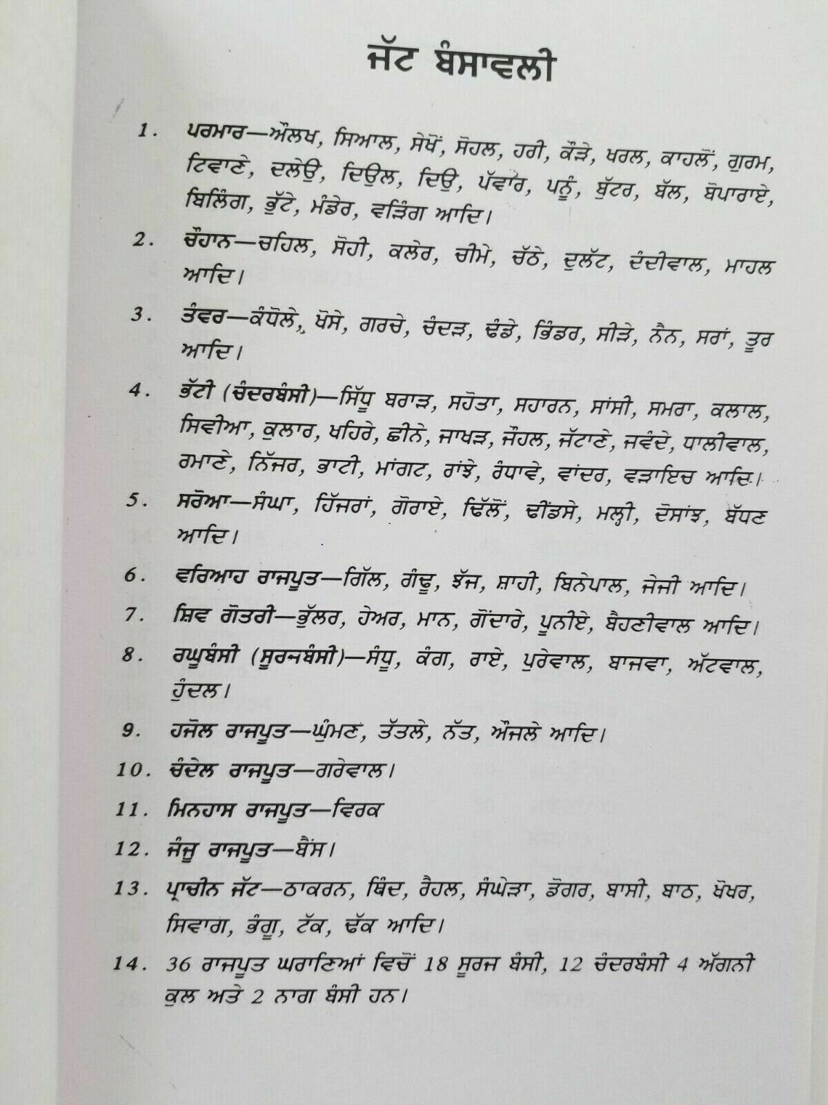Book is written in Simple Punjabi. History of 101 Jatt surnames in the book. Please see preface photo showing the contents.Pages 175. Paperback