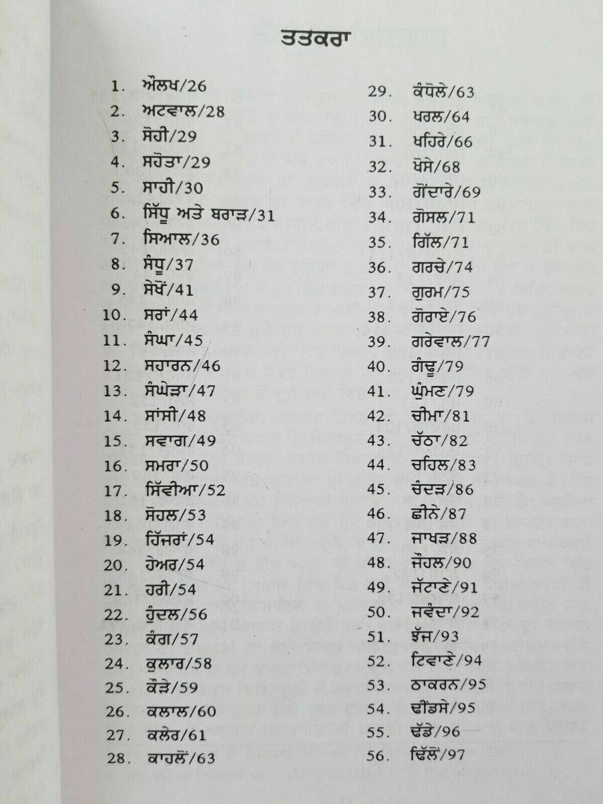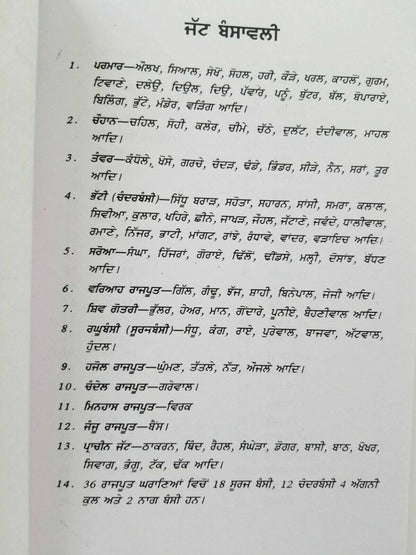 Book in Punjabi (Gurmukhi/Indian Punjabi). It is a rare book that contains a historical study of one hundred and one Jat Subcastes).