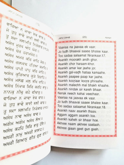 Tenga en cuenta esta boca Sahib tiene sólo Gurmukhi lengua y su transliteración/Pronunciación en romano. Ninguna traducción inglesa está disponible en estos sahibs Gutka.