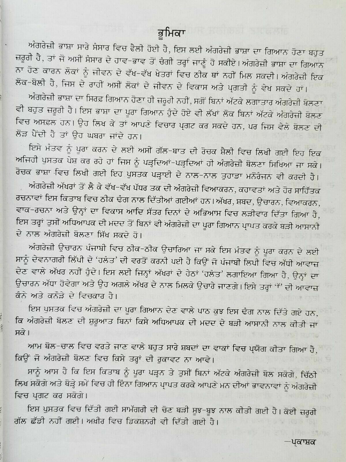 Just for information: It is also helpful for those English Speakers who want to learn Punjabi as my own Son is using this book to learn Punjabi and it is very helpful.