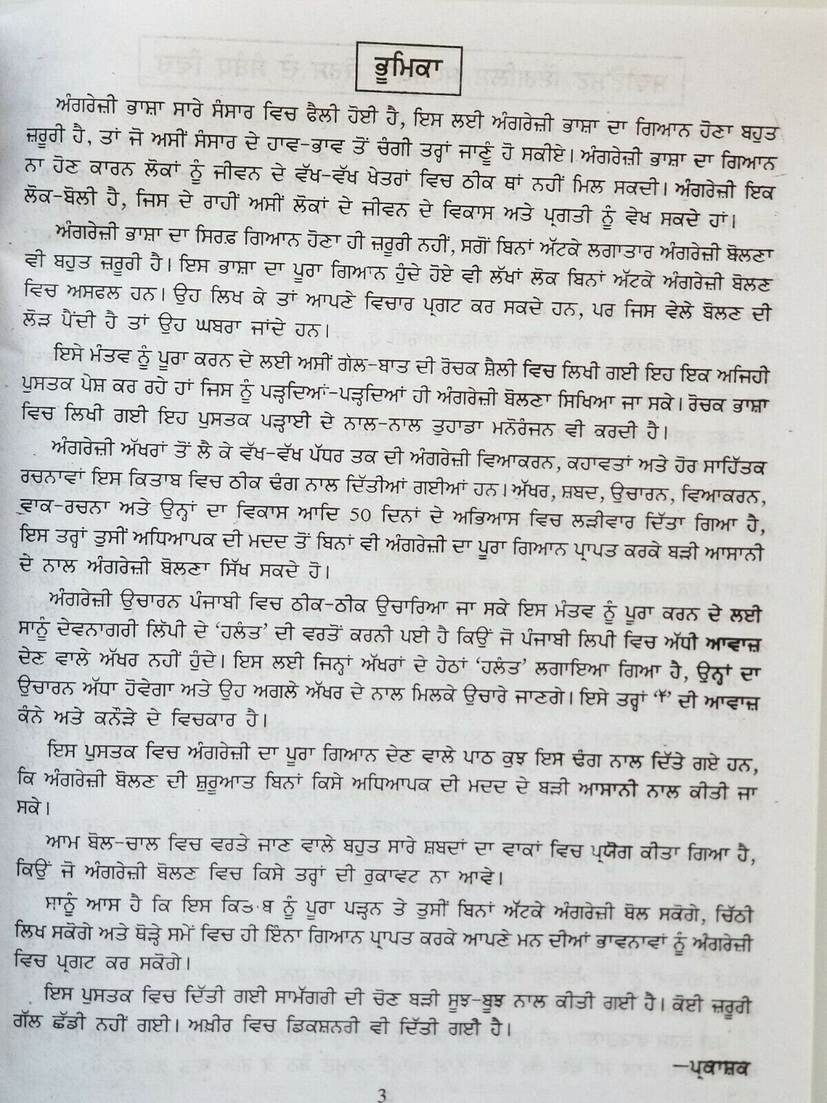 Learn English within Few days - Very Easy Course to learn English from Punjabi within 50 Days. The Simplest way to learn in English - in few days Achieve a New Horizon Pages 288 + 80 Pages Dictionary. Paperback * Comes with Tutorial CD * Contains 80 pages of Punjabi - English DictionaryLanguage: English/Indian Punjabi GurmukhiJust for information:It is also helpful for those English Speakers who want to learn Punjabi as my own Son is using this book to learn Punjabi and it is very helpful. We have many other Punjabi books (Punjabi Alphabets, Punjabi Mini Stories, Punjabi word Sounds, Punjabi Pronunciation, Grand mother's Punjabi Stories with Morals etc.) listed in our shop to learn Punjabi and will personally recommend you all. Should you have any queries please do not hesitate to contact us.Postage discounts for multi-buys. Any questions please do not hesitate to contact us.P.S. Colour of item may slightly vary due to camera flash and light conditions. Please note cover of paper may vary as publishers keep on changing front of books each time they publish new edition. Please buy with confidence.Modified Item: No Country/Region of Manufacture: India Topic: English Speaking Course,Literature Series: None Format: Paperback Product Type: Reading Book Educational Level: Comprehensive School,Primary School,Secondary School,Sixth Form College,Vocational School Type: Textbook Author: Rakesh Kumar Subject: English - Punjabi Learning Publication Year: 2020 Language: Punjabi - English Publisher: Pradeep Special Attributes: Paper Back ISBN: Does not apply